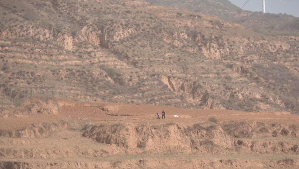 “一身补丁,窝头就咸菜,勒紧裤腰带,汗水土里埋。”影片中,一名70岁的老人坐在梯田落差处休息,突然唱起歌,边唱边拿起盆子,往地里撒肥料。