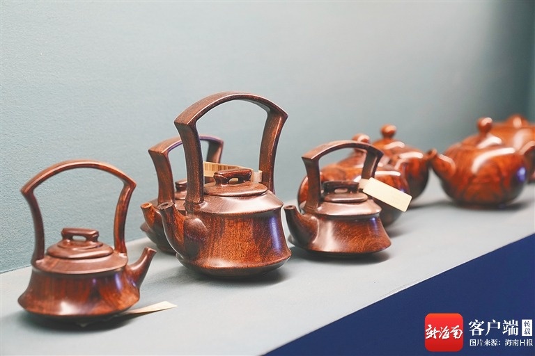 首届大国非遗工匠胡敬阳创作的木雕作品——提梁壶,采用海黄制作而成。海南日报全媒体记者 封烁 摄